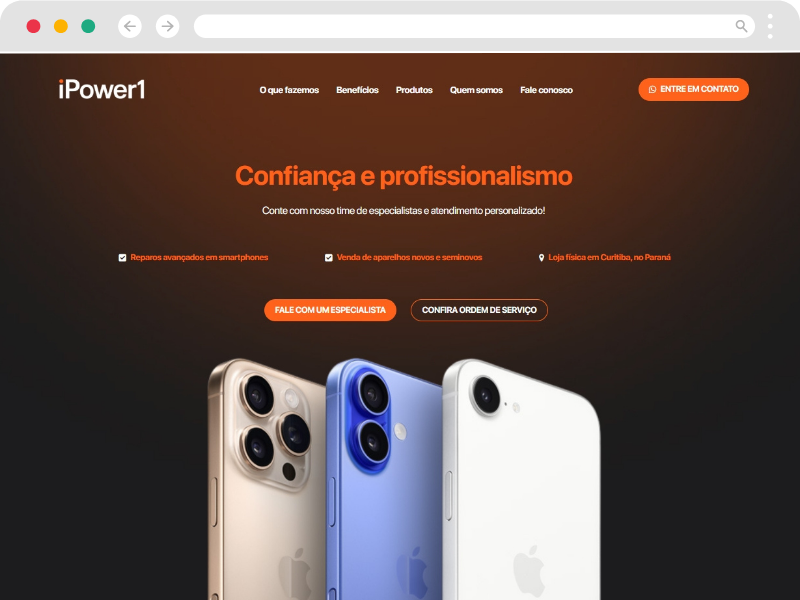 O seu site profissional adaptado para todos os tamanhos e tipos de telas, como computadores e smartphones.