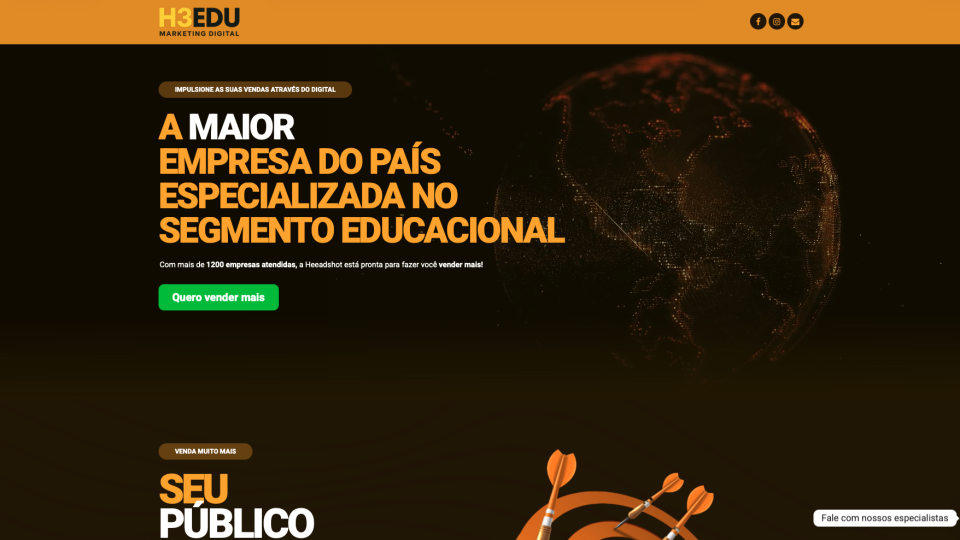 Seu site profissional integrado com serviços como o Pixel do Facebook, Google Analytics, RD Station e outros.